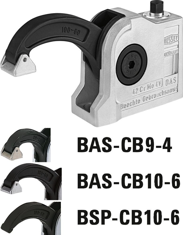 Spannkraft bis zu 16.000 N Platzsparende Bauweise und damit bis zu 30?% kleiner als vergleichbare Wettbewerbsmodelle Gehäuse und Druckarm aus vergütetem Edelstahl, dadurch äußerst robust und langlebig In drei Druckarmvarianten erhältlich: kurzer und langer Druckarm mit schwenkbarem Aluminium-Druckschuh oder spitzer Druckarm zum Spannen auf schmalen Absätzen oder bei begrenzten Platzverhältnissen BAS-C mit offener und BAS-CB mit geschlossener Befestigungsbohrung für M?10?/?M?12