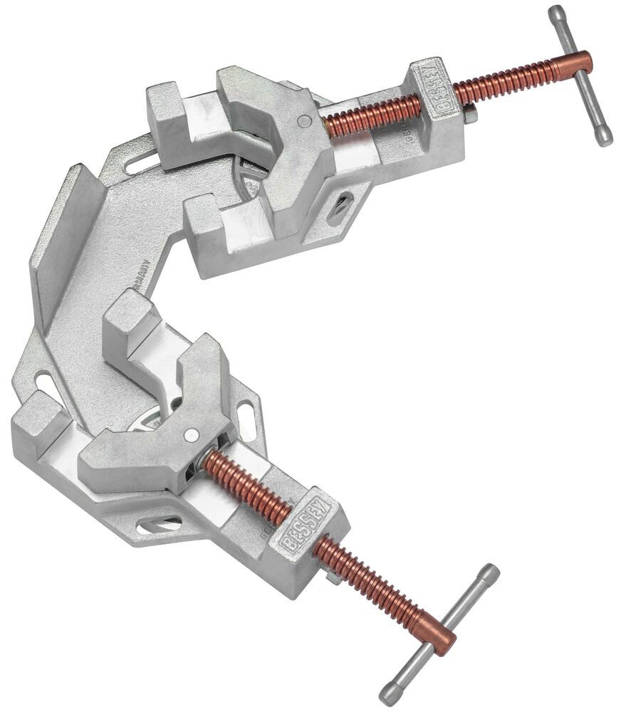 Spannhilfe für unterschiedlich starke Bauteile in beliebig einstellbaren Winkeln