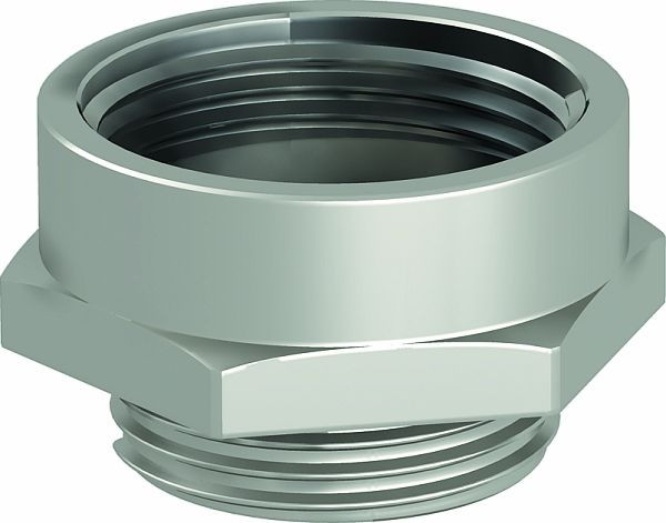 Adapter von einer Pg-Gewindebohrung auf eine größere metrische Gewindebohrung.