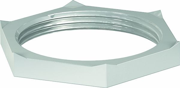 | Kurzbeschreibung | Gegenmutter mit Schneidzähnen M40x1,5 Messing vernickelt |