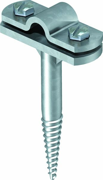 für Rundleiter Rd 8-10, für Flachleiter bis FL30, mit Holzschraubengewinde, Überleger und Schrauben aus Stahl, feuerverzinkt