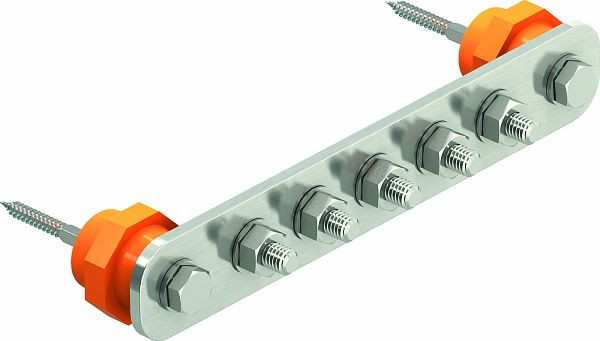 | Kurzbeschreibung | Potentialausgleichsschiene BigBar / 5 Anschlüsse 5xM10 Edelstahl, rostfrei A2 1.4301 |