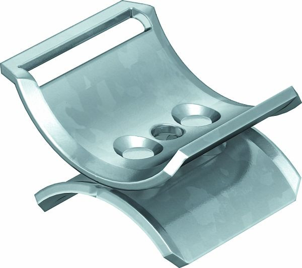Doppelwanne aus Metall als Zwischenlage zwischen zwei oder drei Kabeln innerhalb einer Bügelschelle.
