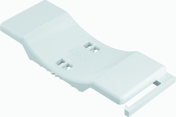 Unabhängig von der Schiene, universell einsetzbar durch Aufschieben auf einen Schenkel der Bügelschelle. Durch eine intelligente Kontur auf der Rückseite, kombinierbar zur Doppelwanne. Nachträgliche Installation ohne Demontage der Bügelschelle möglich.