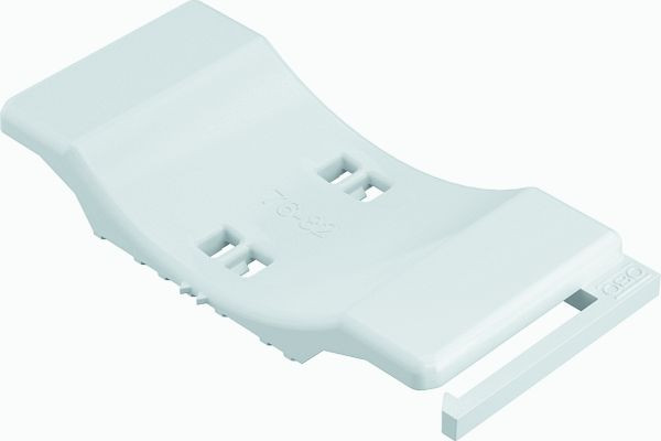 Unabhängig von der Schiene, universell einsetzbar durch Aufschieben auf einen Schenkel der Bügelschelle. Durch eine intelligente Kontur auf der Rückseite, kombinierbar zur Doppelwanne. Nachträgliche Installation ohne Demontage der Bügelschelle möglich.