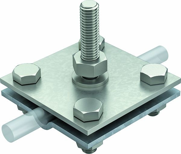 | Kurzbeschreibung | Kreuzverbinder flach/rund mit Gewindebolzen M10x45 8-10mm Edelstahl, rostfrei A2 1.4301 tauchfeuerverzinkt / Edelstahl, rostfrei 1.4301 |
