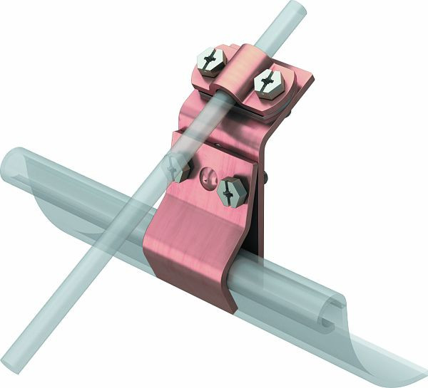 • Zweimetall zum Anschluss von Rundleitern aus Alu oder Stahl tauchfeuerverzinkt an Kupferdachrinnen ohne Korrosion der unterschiedlichen Metalle