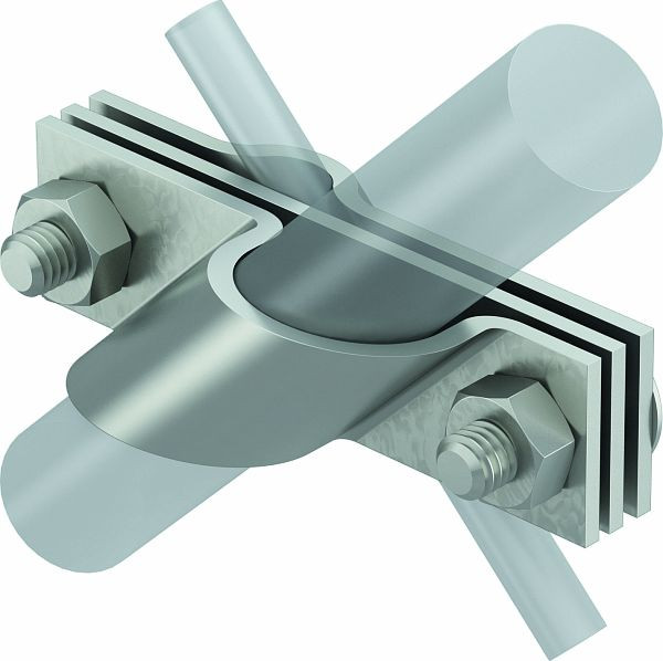 passend zum Anschluss von Rundleiter Rd 8-10 bzw. Flachleiter bis FL40, mit Zwischenplatte, montiert mit 2 Sechskantschruaben M10x30 und Sechskantmuttern M10
