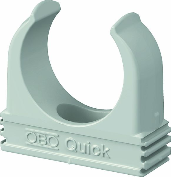 Flammwidrige Aufputzschelle zur Aufnahme von metrischen Stahlpanzerrohren, leichten und schweren Isolierrohren sowie Elektroinstallationsrohr Quick-Pipe. Universelle Befestigungsmöglichkeiten an Wand und Decke im Innen- und geschützten Außenbereich. Mit Langloch zum seitlichen Ausrichten bei Montage mit Holzschraube oder Schlagdübel. Werkzeuglose Rohrmontage. Aneinander reihbar auch mit OBO Multi-Quick- oder proQuick-Schelle. Größe M16 - M32 kann auf Gewinde M6 geschraubt werden. Befestigungsabstand 50 - 60 cm, max. Auszugswerte F bei 20° C Raumtemperatur siehe Tabelle.