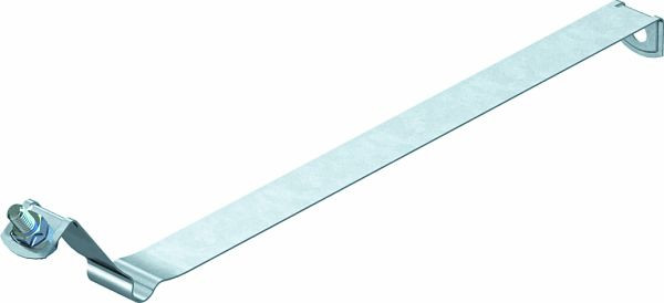 zur Verlegung von Rundleitern Rd 8-10 hinter dem Regenrohr, montiert mit 1 Sechskantschraube M 6 x 20 und Sechskantmutter M 6, Schraube und Mutter feuerverzinkt
