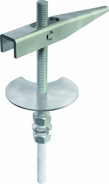 Stahl, galvanisch verzinkt, mit 2 U-Scheiben und 2 Sechskantmuttern 2 U-Scheiben und 2 Sechskantmuttern, mit Gewindeschaft.