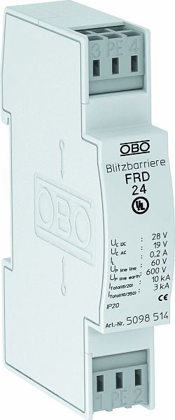 | Kurzbeschreibung | Blitzbarriere mit Entkopplungswiderstand 24V AC |