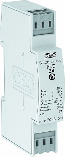 | Kurzbeschreibung | Blitzbarriere mit Entkopplungsinduktivität 24V AC |
