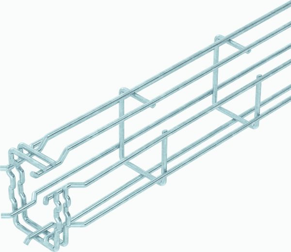 Gitterrinne in G-Form aus punktgeschweißten Stahldrähten mit unterschiedlichen Seitenhöhen und Breiten.