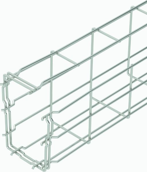 Gitterrinne in G-Form aus punktgeschweißten Stahldrähten mit unterschiedlichen Seitenhöhen und Breiten.