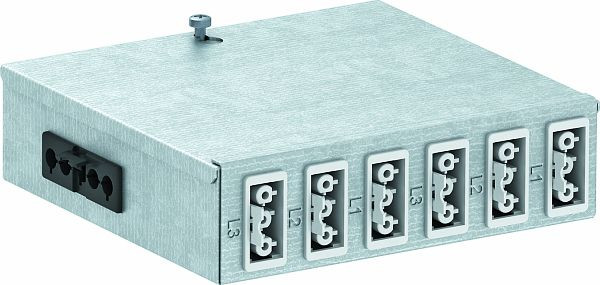 Energieverteiler für Starkstromtechnik mit Steckanschluss, bestückt und vorverdrahtet.