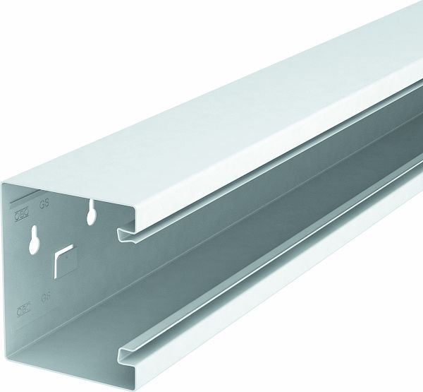 GS Geräteeinbaukanal zur Montage auf der Wand oder an Befestigungskonsolen. Der GS Geräteeinbaukanal verfügt über selbstkontaktierende Rastlaschen zur Aufnahme einer Trennwand aus Stahlblech. Der Potentialausgleich zwischen den Kanalunterteilen erfolgt über die Kupplung. Zwischen Oberteil und Unterteil wird die Schutzmaßnahme und der Potentialausgleich durch die patentierte, selbstkontaktierende Kanalabdeckung gewährleistet. Die Systemöffnung beträgt real 76,5 mm. Das Oberteil muss separat bestellt werden.