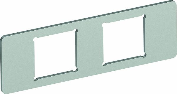 Montageplatte zur Aufnahme von zwei Anschlussbuchsen der Datentechnik folgender Typen: AMP TYCO: Standard 110Connect, SL Serie 110Connect u. Toolless, AMP-Twist ; Brand-Rex: ungeschirmtes Modul; GG45; TKM RJ MOD; Nexans: LANmark Modul mit Adapter-Clip; Siemon CAT6; 3M K6 und K10.