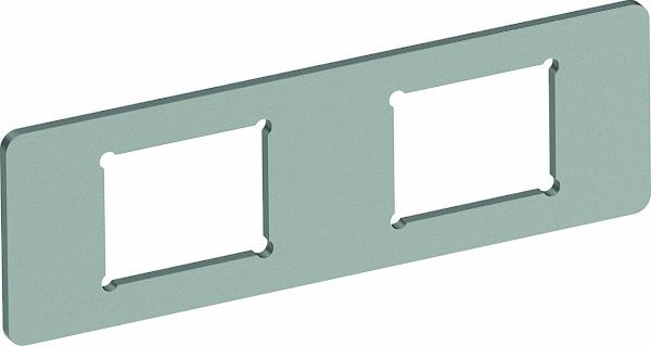 Montageplatte zur Aufnahme von zwei Anschlussbuchsen der Datentechnik folgender Typen: Brand-Rex: geschirmtes Modul; EKU: E-Stone Modul; Dätwyler: KS-T, MS-K und KU-T Modul; R&M: Snap-In und Keystone Modul; Rutenbeck: UM und UMflex Modul; SETEC: MKJ, UKJ und XKJ Modul; Siemon TERA; Telegärtner: AMJ und UMJ Modul.
