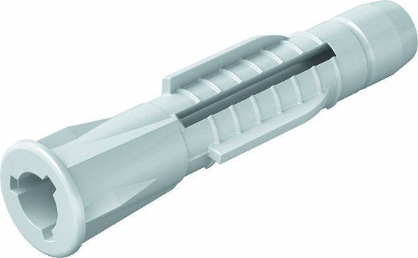 Auch als Hohlraumdübel geeignet, mit Kragen gegen Durchrutschen. 3 angesetzte Flossen nehmen das Drehmoment auf.