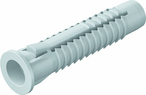 Auch als Hohlraumdübel geeignet, mit Kragen gegen Durchrutschen. 3 angesetzte Flossen nehmen das Drehmoment auf.