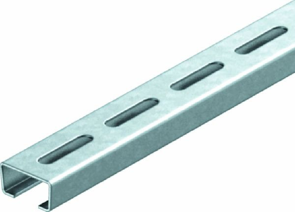 Mittlere C-Profilschiene zur Kabelverlegung, in Verbindung mit Bügelschellen mit Hammerkopf-Fuß. Auch verwendbar als Abhängekonstruktion für Kabeltragsysteme.