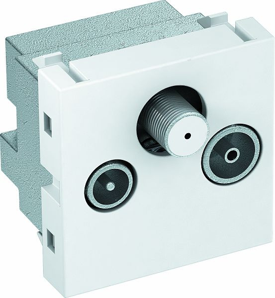 Stichdose zum Anschluss von Antennen-, BK- und Satellitenempfangs-Anlagen mit Anschlussbuchsen für TV-, Radio- und SAT-Stecker. Die Antennensteckdose kann in Geräteeinbaukanälen Rapid 45, Geräteeinbaukanälen Rapid 80, Installationssäulen und Unterflur-Systemen eingesetzt werden.