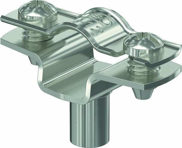 Abstandschelle zur Montage von Rohren und Kabeln an Wand, Decke und Boden. Mit selbstsicherndem Oberteil. Befestigung über Ansatz mit Innengewinde. Oberflächen G und FT ab Schellengröße 20 geeignet für Montage mit Nagelgerät oder Bolzensetzgerät.