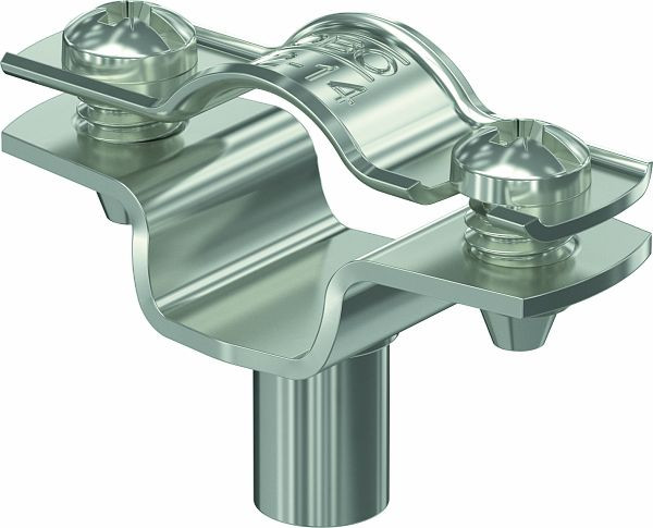 Abstandschelle zur Montage von Rohren und Kabeln an Wand, Decke und Boden. Mit selbstsicherndem Oberteil. Befestigung über Ansatz mit Innengewinde.