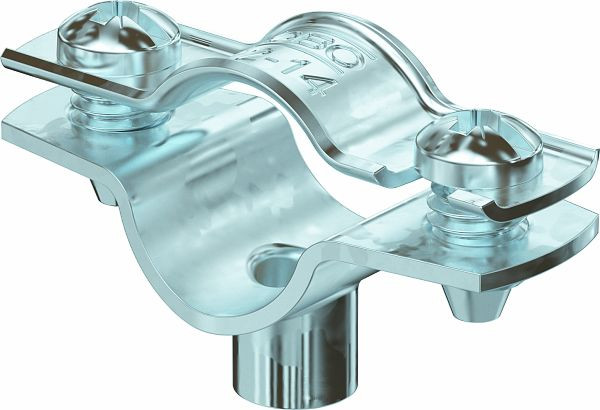 Abstandschelle zur Montage von Rohren und Kabeln an Wand, Decke und Boden. Mit selbstsicherndem Oberteil. Befestigung über Ansatz mit Innengewinde. Oberflächen G und FT ab Schellengröße 20 geeignet für Montage mit Nagelgerät oder Bolzensetzgerät.