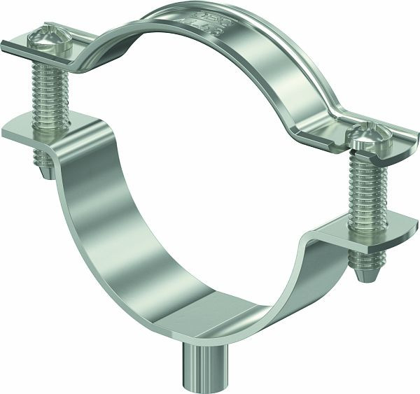 Abstandschelle zur Montage von Rohren und Kabeln an Wand, Decke und Boden. Mit selbstsicherndem Oberteil. Befestigung über Ansatz mit Innengewinde.