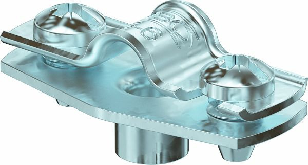 Abstandschelle zur Montage von Rohren und Kabeln an Wand, Decke und Boden. Mit selbstsicherndem Oberteil. Befestigung über Ansatz mit Innengewinde. Oberflächen G und FT ab Schellengröße 20 geeignet für Montage mit Nagelgerät oder Bolzensetzgerät.