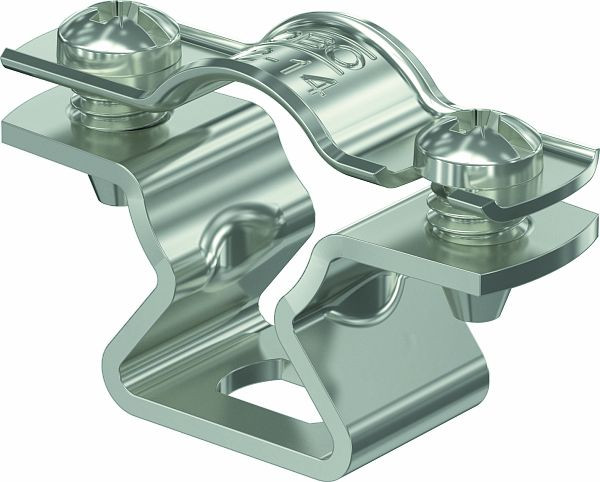 Abstandschelle zur Montage von Rohren und Kabeln an Wand, Decke und Boden. Mit selbstsicherndem Oberteil. Befestigung über Langloch.