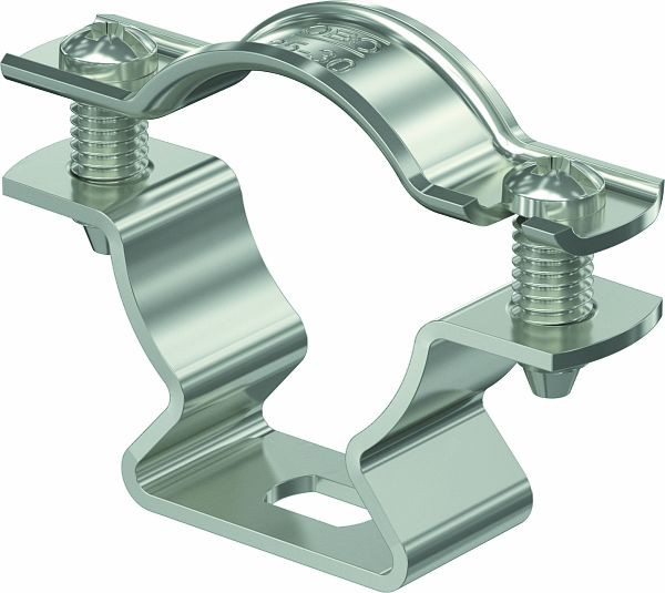 Abstandschelle zur Montage von Rohren und Kabeln an Wand, Decke und Boden. Mit selbstsicherndem Oberteil. Befestigung über Langloch.