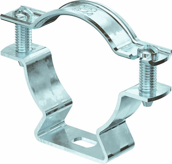 Abstandschelle zur Montage von Rohren und Kabeln an Wand, Decke und Boden. Mit selbstsicherndem Oberteil. Befestigung über Langloch.