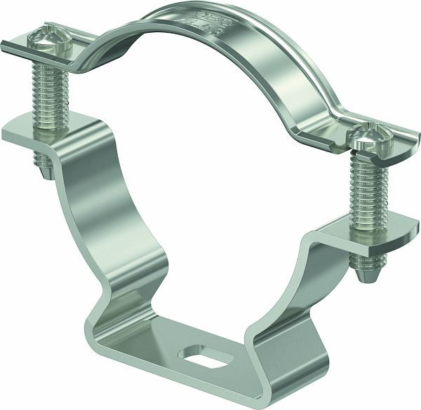 Abstandschelle zur Montage von Rohren und Kabeln an Wand, Decke und Boden. Mit selbstsicherndem Oberteil. Befestigung über Langloch.