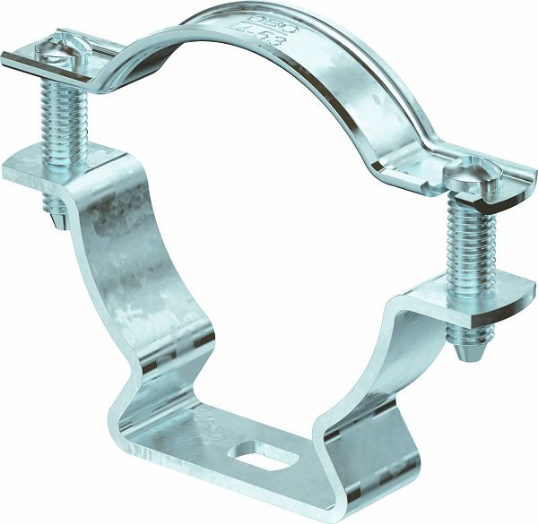 Abstandschelle zur Montage von Rohren und Kabeln an Wand, Decke und Boden. Mit selbstsicherndem Oberteil. Befestigung über Langloch.