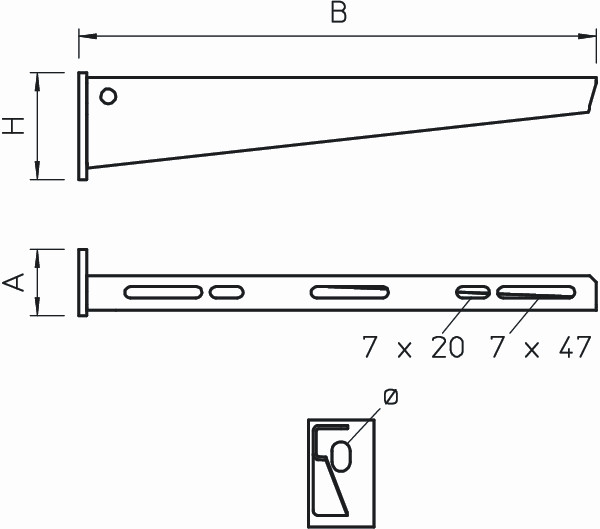 Leichter Wand- und Stielausleger mit angeschweisster Kopfplatte zur Befestigung an U-Stielen, Konstruktionen und an Waenden.