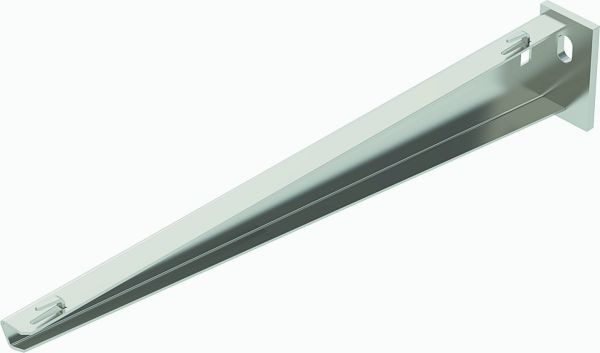 Leichter Wand- und Stielausleger mit angeschweißter Kopfplatte für die schraubenlose Gitterrinnenbefestigung.