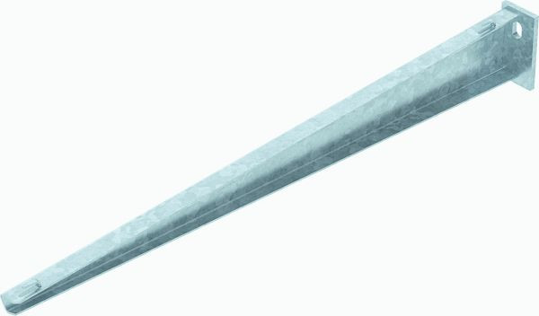 Leichter Wand- und Stielausleger mit angeschweißter Kopfplatte für die schraubenlose Gitterrinnenbefestigung.