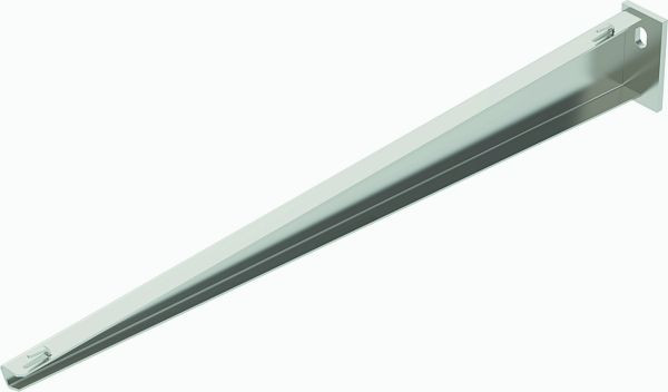 Leichter Wand- und Stielausleger mit angeschweißter Kopfplatte für die schraubenlose Gitterrinnenbefestigung.