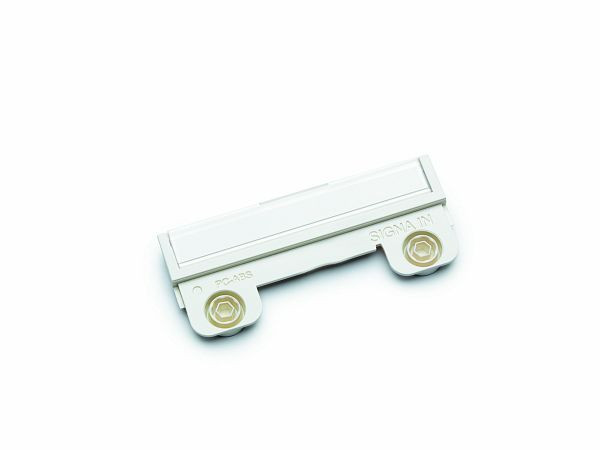 Signa In Beschriftungsfeld vertikal, wird seitlich in den Blendrahmen der Kanalsteckdosen Signa In eingerastet.