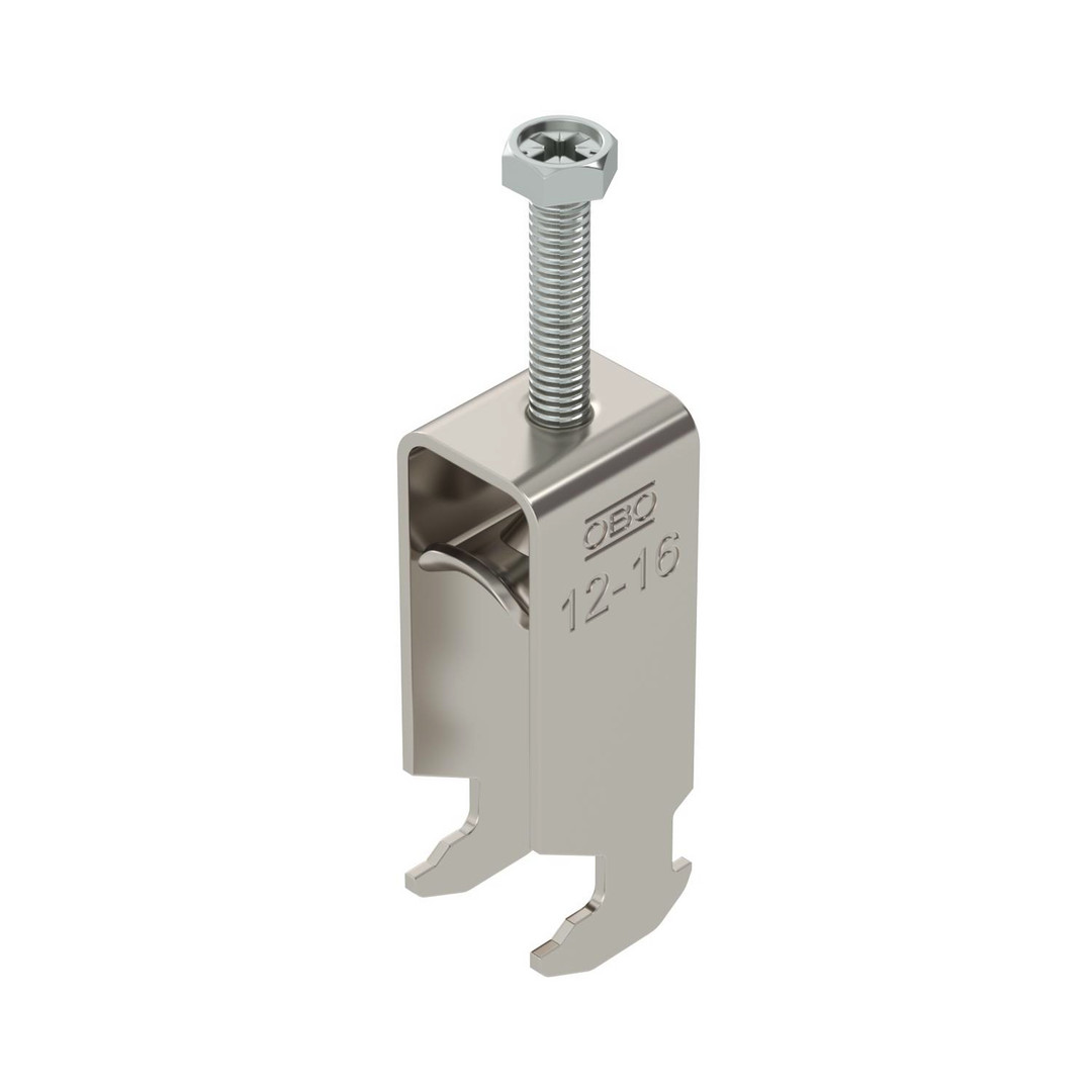 Bügelschelle mit Hammerkopf-Fuß, Metalldruckwanne mit gerundeten Kanten für Kabelschutz. Zur vertikalen und horizontalen Montage von 2 Einzelkabeln an C-Profilschiene. Für Schlitzweite 16 - 17 mm. Mit 1-gängiger Schraube an Druckwanne, universeller Sechskant-Schraubenkopf SW10, mit Schlitz und Kreuzschlitz. Geeignet für Montage im Innen- und Außenbereich. Mehrere Kabel sollten durch Doppelwannen getrennt werden. Der Einsatz einer Gegenwanne wird empfohlen.