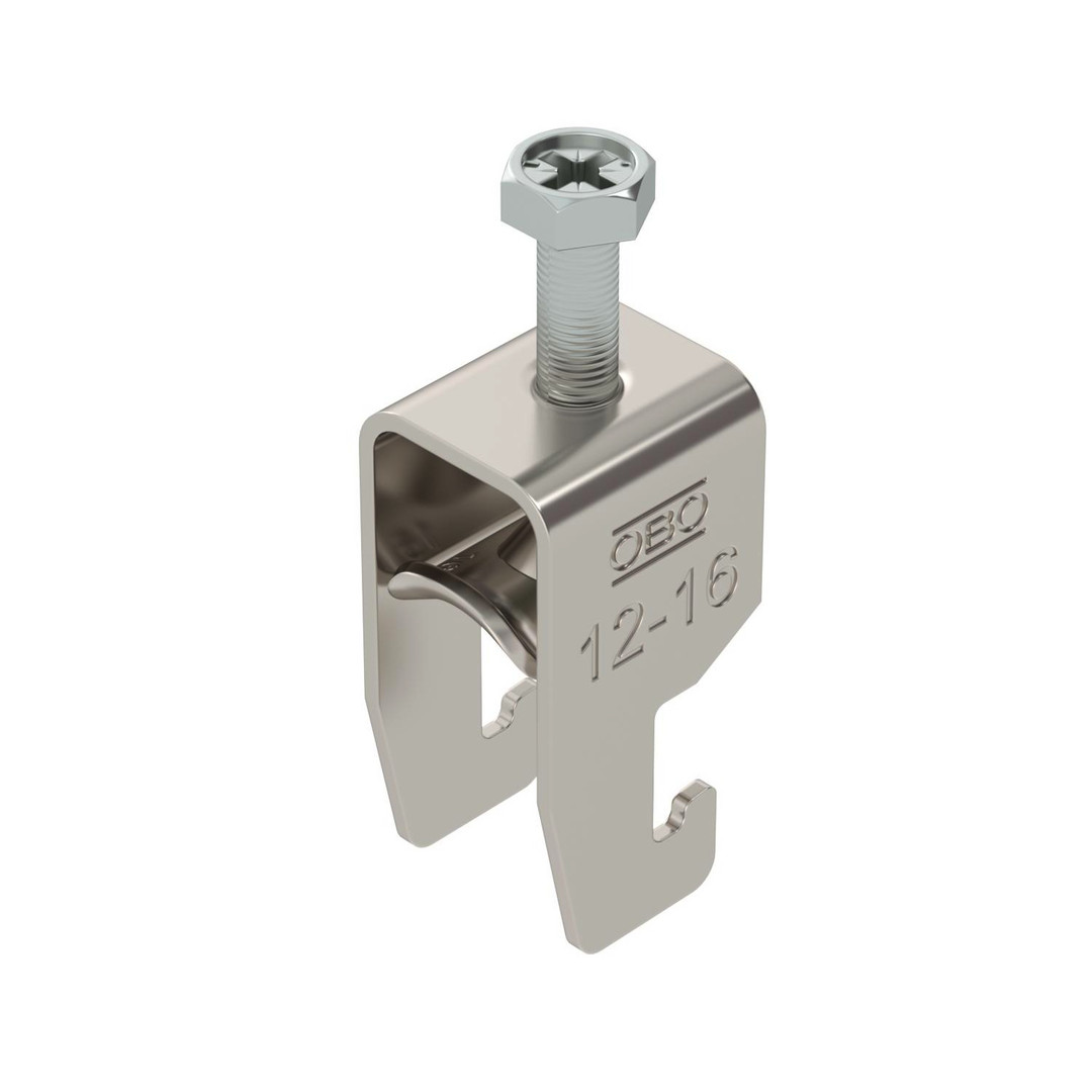 Bügelschelle mit U-Fuß, Metalldruckwanne mit gerundeten Kanten für Kabelschutz. Zur vertikalen und horizontalen Montage von 1 Einzelkabel an C-Profilschiene. Für Schlitzweite 18 - 22 mm. Mit 1-gängiger Schraube an Druckwanne, universeller Sechskant-Schraubenkopf SW10, mit Schlitz und Kreuzschlitz. Geeignet für Montage im Innen-und Außenbereich. Der Einsatz einer Gegenwanne wird empfohlen.