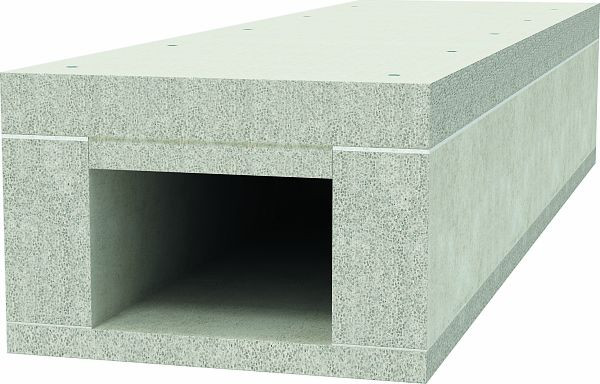 Brandschutzkanal aus wasser- und frostbeständigen Glasfaserleichtbeton der Baustoffklasse A1 gemäß EN 13501-1 zur brandsicheren Verlegung von Kabeln in Flucht- und Rettungswegen und zum Funktionserhalt sicherheitsrelevanter Anlagen. Klassifizierung I120 als I-Kanal gemäß DIN 4102 Teil 11 und Klassifizierung E90 als E-Kanal gemäß DIN 4102 Teil 12.