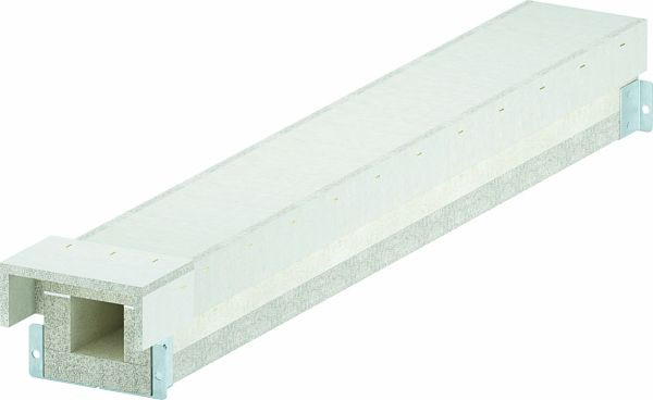 Brandschutzkanal aus wasser- und frostbeständigen Glasfaserleichtbeton der Baustoffklasse A1 gemäß EN 13501-1 zur brandsicheren Verlegung von Kabeln in Flucht- und Rettungswegen und zum Funktionserhalt sicherheitsrelevanter Anlagen. Klassifizierung I90 als I-Kanal gemäß DIN 4102 Teil 11 und Klassifizierung E30 als E-Kanal gemäß DIN 4102 Teil 12.