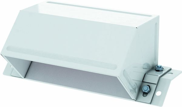 Vertikalbogen in fallender Ausführung zur Herstellung von vertikalen Versprüngen bei abgehängter Montage des BSKM 1025, mit Aufnahmemöglichkeit für Gewindestangen M10, inklusive Dichtungen und Muttern, sowie Schrauben für den Potentialausgleich.