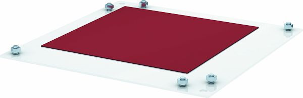 Adapterplatte für abgehängte Montage der Flachwinkelhaube BSKM-FW 1025, mit Aufnahmemöglichkeit für Gewindestangen M10, inklusive Muttern.
