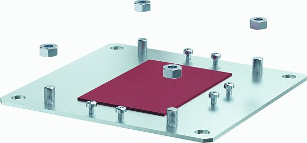Adapterplatte für abgehängte Montage des T-Abzweigs BSKM-TA 0407, mit Aufnahmemöglichkeit für Gewindestangen M10, inklusive Muttern.