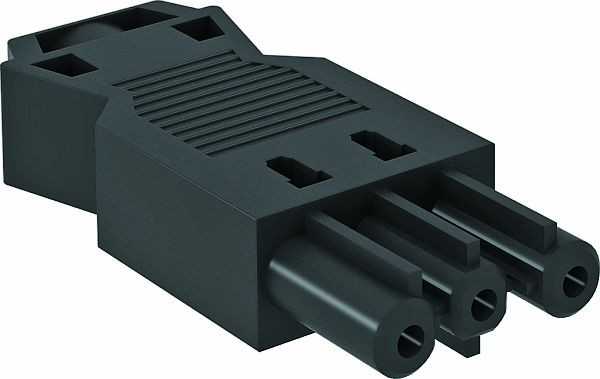 Buchsenteil 3-polig, Typ GST18i mit Schraubanschluss, geringe Bauhöhe (kein Steckplatzverlust in Kombination mit Verteilerblöcken), für Querschnitt 0,75 - 2,5 mm², ein- und feindrähtige Leiter ohne Aderendhülse anschließbar, für Leitungsdurchmesser von 6,5 - 10,5 mm (H05VV, NYM), unmontiert mit Zugentlastung, vor Ort konfektionierbar, 250 V, 16 A.